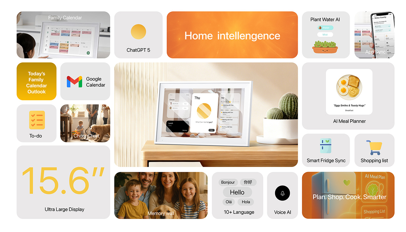 The Smart Family Calendar seamlessly integrates your family’s schedules, to-dos, photos, and household reminders into one intuitive display. Whether it’s school drop-offs, grocery lists, or your next family dinner, everything is just a glance away. Powered by an AI zAssistant, it not only keeps your plans organized but learns from your routines to make personalized recommendations — ensuring your days run smoothly, not stressfully.
